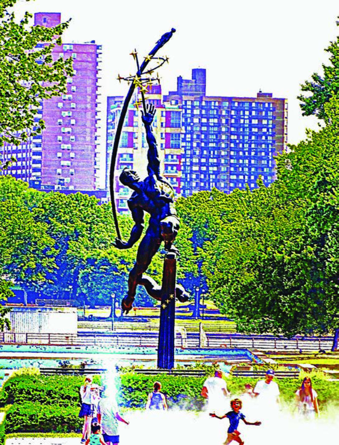 The fair featured nine spectacular fountains. “Fountains of the Fair’s” recently renovated mist garden sprays visitors with cooling water as it did six decades ago. The restored “Fountain of the Continents” surrounding the Unisphere operated annually at the U.S. Open until 2022. The “Astral Fountain” has been converted into a skateboard park. The “Fountain of the Planets,” once the largest fountain in the world, presented light shows and fireworks visible from miles away to residents, including me. Today, it sits abandoned and filled with garbage. All that remains of the neglected “Fountain of Progress North” and “Fountain of Progress South” are dried-up ruins.