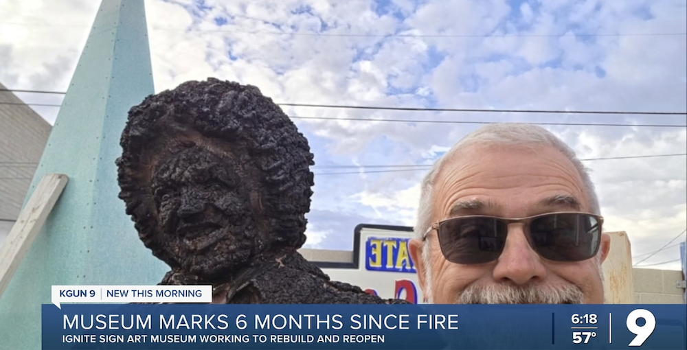 From KGUN9: TUCSON, Ariz. — Saturday, April 18th marks six months since a devastating fire ripped through the Ignite Sign Art Museum in midtown Tucson. The museum told a unique story about Tucson’s past for years, but the owner is building back now to someday light up the neon once again.